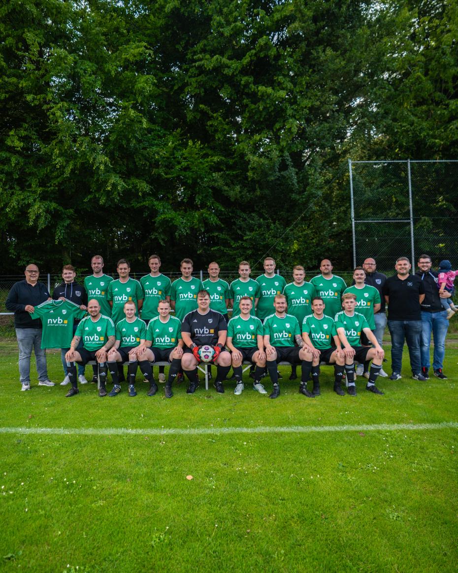 SV Olympia Uelsen III läuft ab sofort in frischem Style auf ! 💥 Die 3. Herrenmannschaft darf sich über einen nagelneuen Trikotsatz freuen – gesponsert von der nvb.